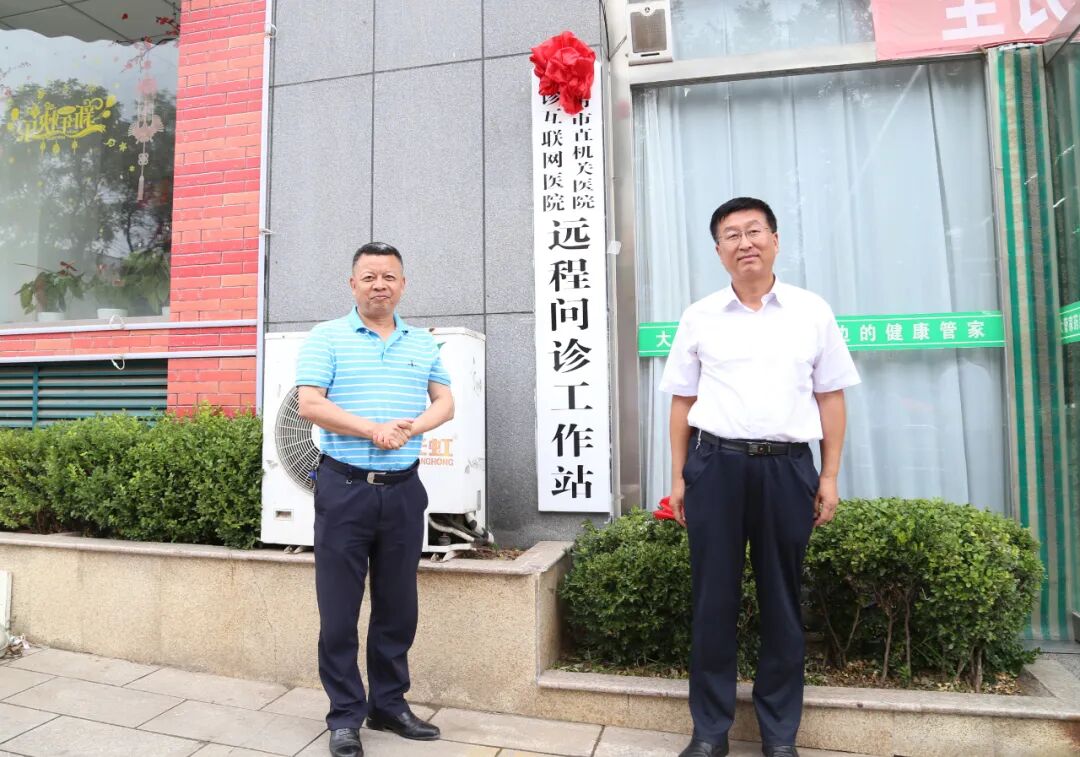 为让人民群众切实享受到“互联网+医疗健康”创新成果带来的实惠,实现药店终端处方药零售的高效服务和有效监管,7月3日,“快诊”互联网医院潍坊良泉连锁远程问诊工作站揭牌仪式在安丘市良泉药店举行。潍坊市市直机关医院党总支部书记、理事长隋洪林,潍坊市政府办公室四级调研员、潍坊市高新区民营企业高质量发展服务队队长齐清明、安丘市市场监督管理局副局长陈树启、药械化科副科长潘学军、安丘市卫健局李玉娟、解国清以及良泉医药总经理马海容、山东蓝创网络技术股份有限公司董事长李立波、市直机关医院快诊互联网医院许䶮、快诊互联网医院(山东)有限公司王鹏程、王锦熙参加揭牌仪式。